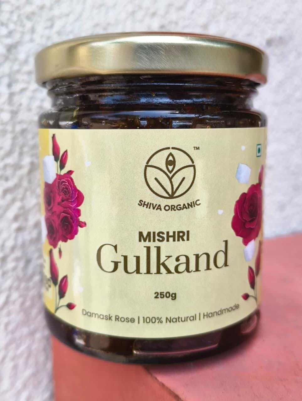 Mishri Gulkand- Gulkand, often referred to as the "Rose Petal Jam," is more than just a sweet treat; it is a reflection of India's rich cultural heritage and the age-old practice of using natural ingredients for culinary and medicinal purposes. Shiva Organic’s Gulkand is prepared using ancient Ayurveda method, sun-cooked Rose Petals over a period of month, infused with herbs. Gulkand is made by using desi gulab petals and desi mishri. It can be enjoyed in a traditional paan, as a dessert, or as a refreshing drink, Gulkand continues to captivate the taste buds and offer a range of health benefits to those who savor its sweet essence.